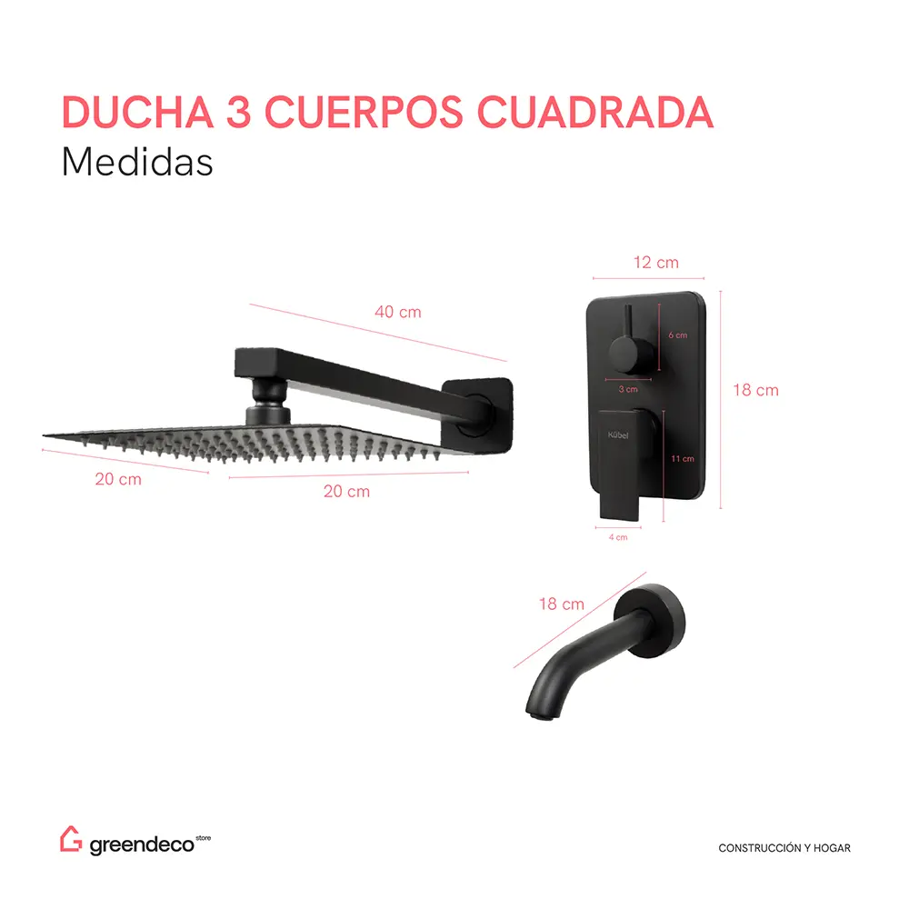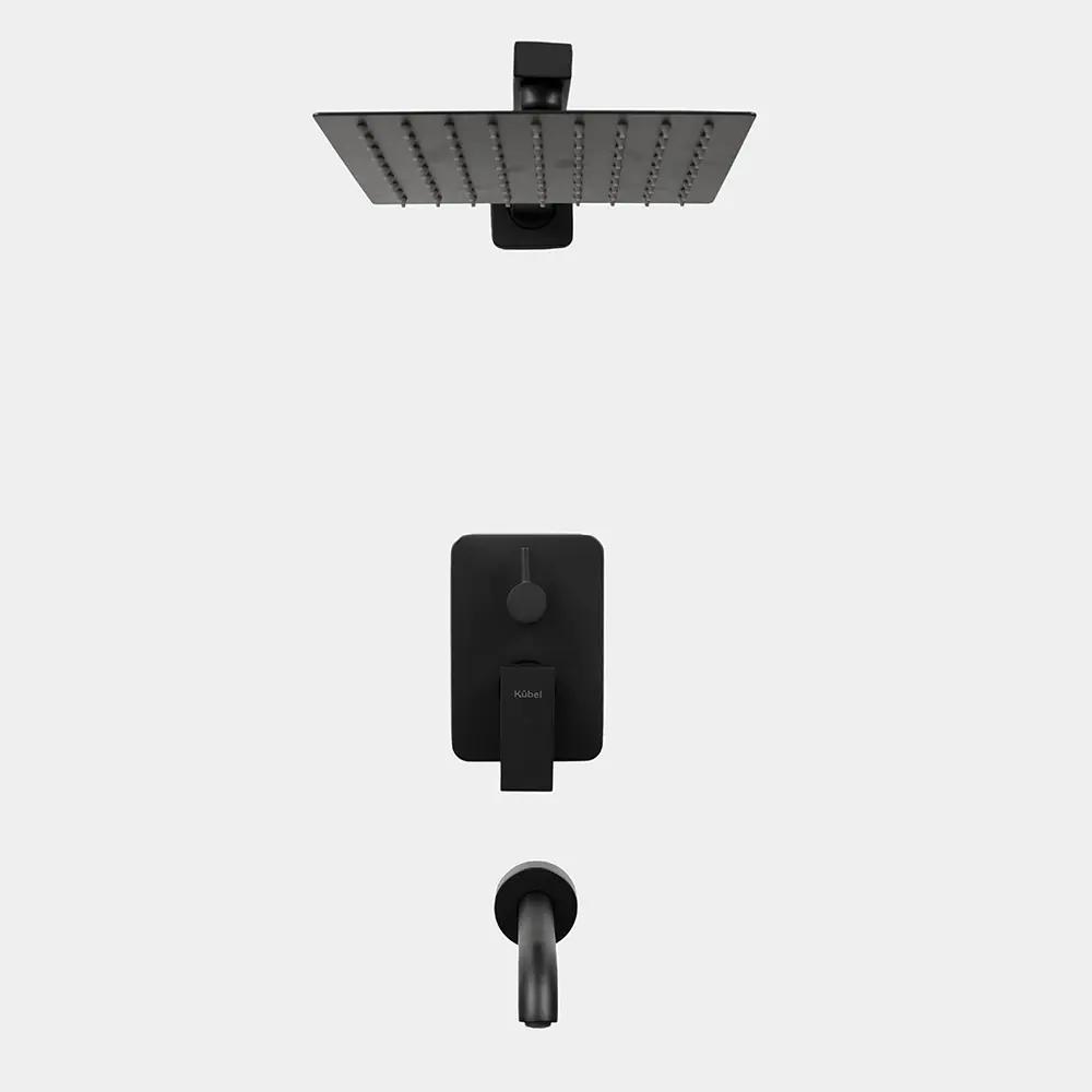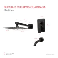 Ducha de Embutir 3 Cuerpos Flor Cuadrada Negra
